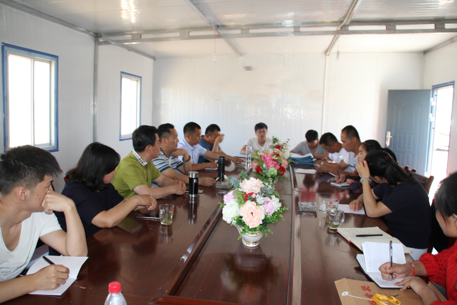 公司領(lǐng)導(dǎo)檢查現(xiàn)場(chǎng)后,召開(kāi)了專(zhuān)題會(huì)議。在聽(tīng)取了工程負(fù)責(zé)人的施工情況匯報(bào)后,公司領(lǐng)導(dǎo)針對(duì)施工進(jìn)度、施工文明安全、工程質(zhì)量、人員配備、工程資料等問(wèn)題提出了明確的指示,要求施工管理人員落實(shí)要求,不斷加強(qiáng)管理,繼續(xù)完善資料管理,有效提升項(xiàng)目管理水平。