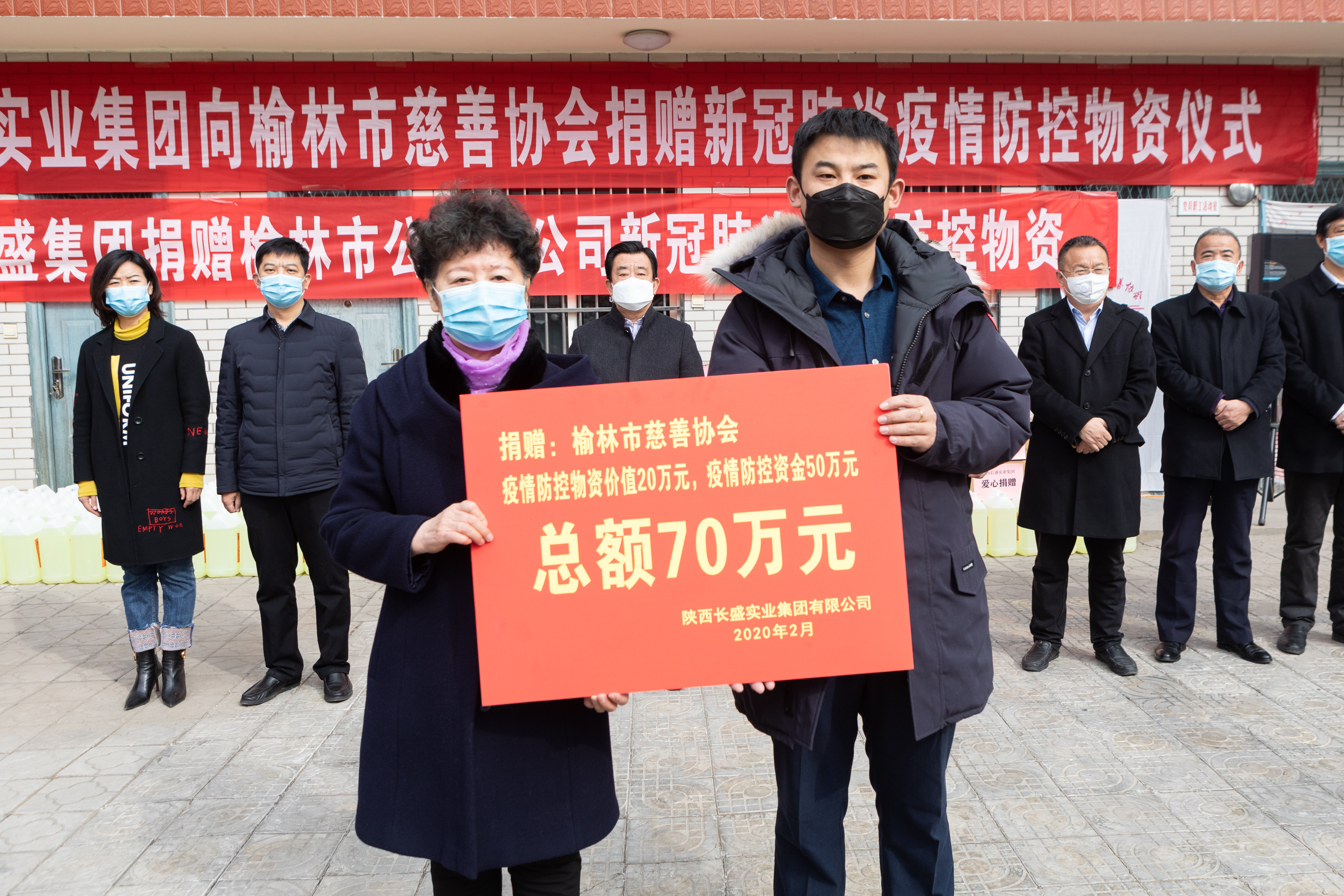 陜西長盛實業(yè)集團向榆林市慈善協(xié)會捐贈70萬元防疫物資及現(xiàn)金