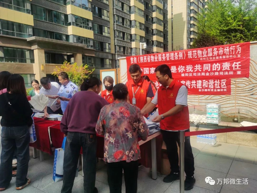 為進(jìn)一步推動(dòng)“法治小區(qū)”的示范建設(shè),榆林市萬(wàn)邦物業(yè)—盛景蘭亭服務(wù)中心攜手區(qū)物業(yè)服務(wù)指導(dǎo)中心、金沙路辦事處、金沙路司法所、金榆社區(qū)工作人員在小區(qū)開展“參與法治建設(shè)、共建幸福家園”法律宣傳活動(dòng)。